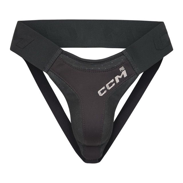 CCM PRO Jock SR (доросла пахова захист) — це професійний захист пахової області для хоккеїстів, призначений для дорослих гравців (Senior). Ця модель забезпечує максимальний захист чутливої частини тіла за рахунок щільності захисної чаші з м'якою внутрішньою підкладкою, яка ефективно розсіює силу ударів шайбою або контактних столкновений. Еластичний широкий пояс (~2,5″ / 6,35 см) щільно сидить на тілі, забезпечує стійку фіксацію, а прочні набедренние ремні з подвійною строчкою надёжно підтримують захист на місці під час активної гри. Ергономічна форма і якісні матеріали роблять цю модель комфортною у використанні навіть на тривалих тренуваннях і матчах. Розміри захисної пахової чаші (орієнтовано по обхвату талії):